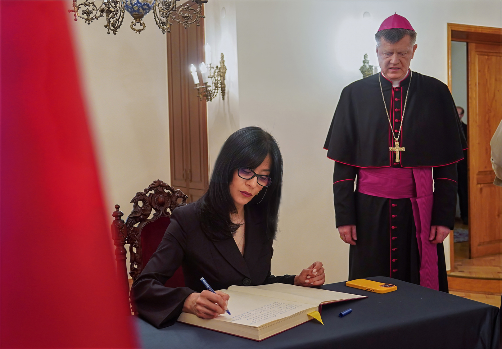 სახელმწიფო მინისტრმა თეა ახვლედიანმა, რომის პაპის გარდაცვალებასთან დაკავშირებით, საქართველოში ვატიკანის საელჩოში გახსნილ სამძიმრის წიგნში ჩანაწერი გააკეთა.